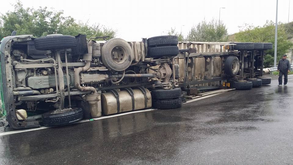 Potrivit reprezentanților poliției, tirul a ieșit de pe partea carosabilă, iar în urma impactului nu au fost înregistrate victime.