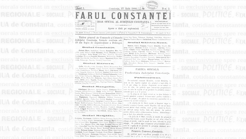 O dată importantă în istoria presei dobrogene. Apărea „Farul Constanţei”,prima publicație a autorității locale, care ne oferă astfel o perspectivă jurnalistică asupra primilor ani de viață românească în Dobrogea. Prin longevitate și ținută ea reprezintă una dintre cele mai importante mărci jurnalistice locale de început.avea patru pagini, textul era grupat pe două coloane. „Farul Constanţei” a luminat până târziu, în 1888, cu aceeaşi sclipire egală din şapte în şapte zile, iar cu întreruperi până în 1938. „Farul Constanţei” avea o parte oficială, de publicaţii. Câteva exemple: