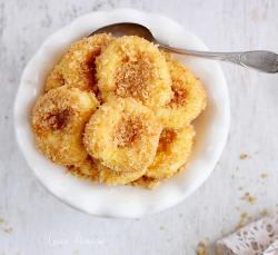 În uleiul încins, la temperatură mică, rumeniţi câte 2 papanaşi deodată - în funcţie de dimensiunea vasului de prăjire - şi tot atâtea biluţe, pe ambele părţi.