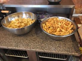 Se taie marunt parizerul, se rad 300 gr cascaval