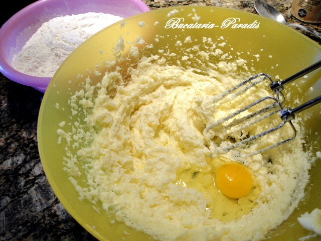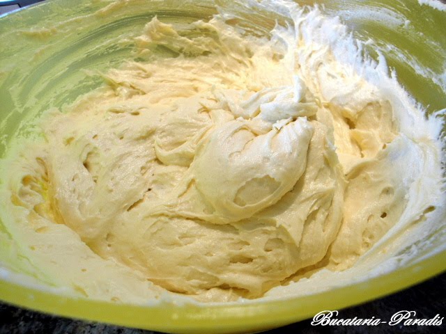Mixam untul cu zaharul. Adaugam un ou si mixam in continuare.