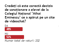 Credeţi că este corectă decizia de sancţionare a elevei de la Colegiul Naţional "Mihai Eminescu" ce a apărut pe un site de videochat?