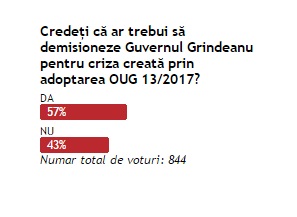 Sondaj: Credeţi că ar trebui să demisioneze Guvernul Grindeanu pentru criza creată prin adoptarea OUG 13/2017?