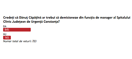 Sondaj de opinie 84% dintre respondenţi cred că Dănuţ Căpăţînă ar trebui să demisioneze din funcţia de manager al Spitalului Judeţean