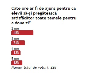 Sondaj de opinie Câte ore ar fi de ajuns pentru ca elevii să-şi pregătească satisfăcător toate temele pentru a doua zi?