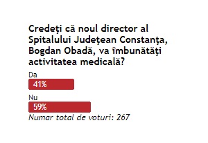 Sondaj de opinie Credeţi că noul director al Spitalului Judeţean Constanţa, Bogdan Obadă, va îmbunătăţi activitatea medicală?