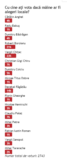 Dacă până acum sondajele s-au adresat, pe rând, celor cu simpatii de dreapta şi celor cu simpatii de stânga, cotidianul ZIUA de Constanţa lansează o nouă provocare. De această dată, îi trecem pe toţi posibilii viitori candidaţi pe o listă comună (în ordine alfabetică). Aşadar, pentru a da o tuşă finală tabloului de ansamblu asupra viitorului scrutin, ZIUA de Constanţa lansează un sondaj de opinie, adresând următoarea întrebare: