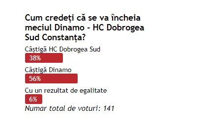 Sondaj de opinie Cum credeți că se va încheia meciul Dinamo - HC Dobrogea Sud Constanța?