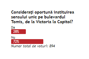 În acest context, ZIUA de Constanța a derulat sondajul de opinie cu întrebarea: Considerați oportună instituirea sensului unic pe bulevardul Tomis, de la Victoria la Capitol?