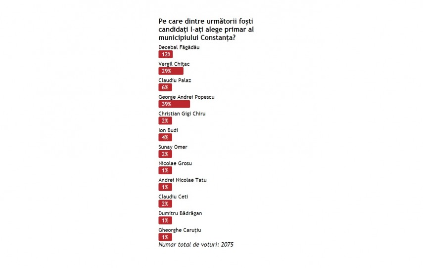 Sondaj de opinie Pe care dintre următorii foști candidați l-ați alege primar al municipiului Constanța?