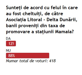 Sondaj de opinie Sunteți de acord cu felul în care au fost cheltuiți, de către Asociația Litoral - Delta Dunării, banii proveniți din taxa de promovare a stațiunii Mamaia?