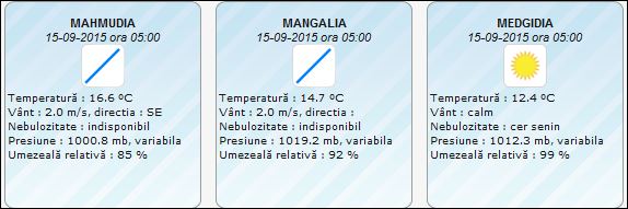 15 septembrie 2015 ora 05.00. Cea mai mică temperatură din judeţul Constanţa era la Medgidia