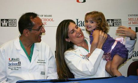 Chirurgii care au efectuat operaţia intrauterină sunt de la Universitatea din Miami - Jackson Memorial Hospital. Singura incizie a fost una mică în abdomenul mamei. Ei au folosit un laser cu care au tăiat tumora de la gura bebeluşului, urmărind permament pe un ecran ce se întâmpla.