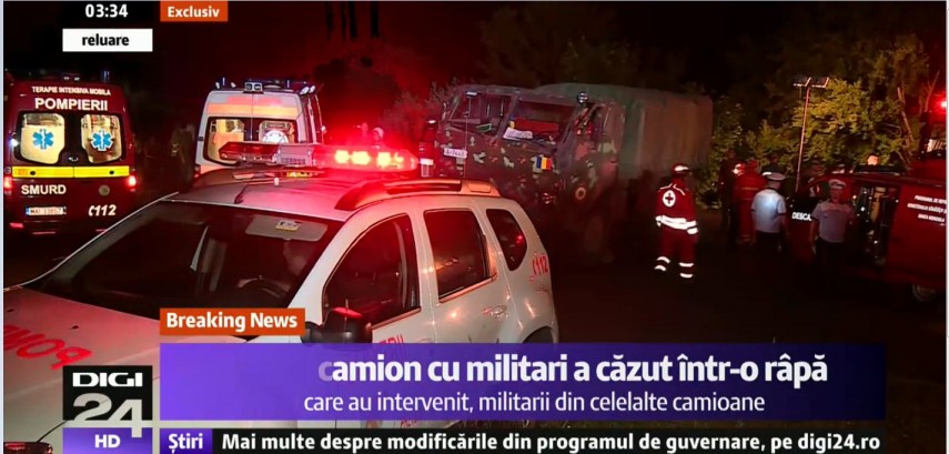 Autocamionul, ultimul dintr-o coloană de patru vehicule militare care se deplasa dinspre Cincu spre Câmpulung, s-a răsturnat în afara carosabilului, în apropiere de localitatea Valea Urdei, județul Argeș. În acest caz a fost sesizat Parchetul Militar, a anunțat MapN.