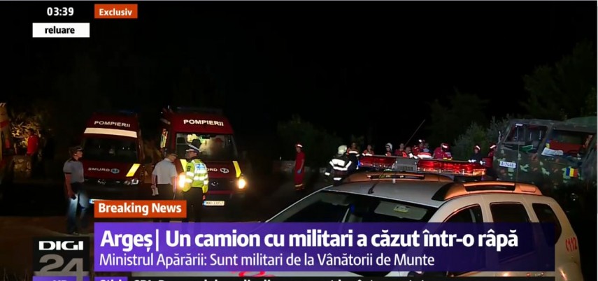 ”Acum s-au încheiat operațiunile de scoatere a trupurilor celor doi militari aflați în cabina camionului și, din păcate, aveau leziuni incompatibile cu viața, practic, motorul camionului a căzut peste ei. Medicii aflați la fața locului au făcut tot ce era necesar, dar a fost declarat decesul acestora, astfel încât numărul persoanelor decedate din cele 13 care se aflau în camion a ajuns la trei', a declarat pentru AGERPRES împuternicitul în funcția de inspector șef al ISU Argeș, maior Bogdan Olar.