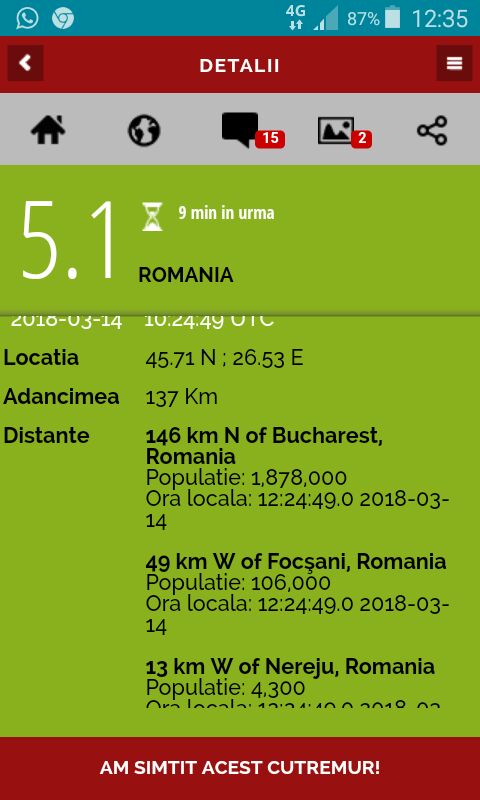 Alerta pe telefoanele mobile a arătat p magnitudine epicentrală de moment 5.1 grade. UPDATE: