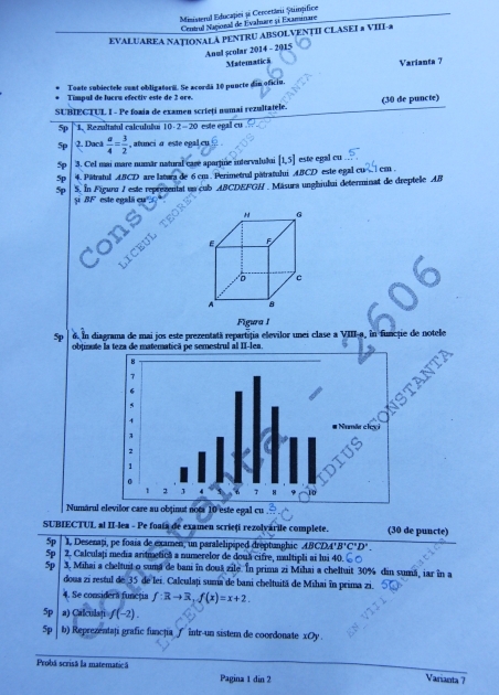 UPDATE 2. FOTO SUBIECTE. Barem de corectare. Evaluarea Naţională la Constanţa Absolvenţii de clasa a opta au început să iasă din examen (document)