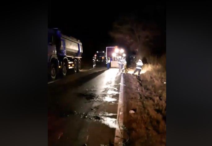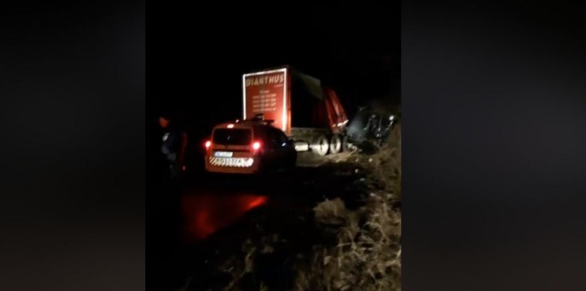 Accident cumplit. Ofițer-șef de post de jandarmi prins cu Loganul între o cisternă și un tir cu tablă. Tânărul