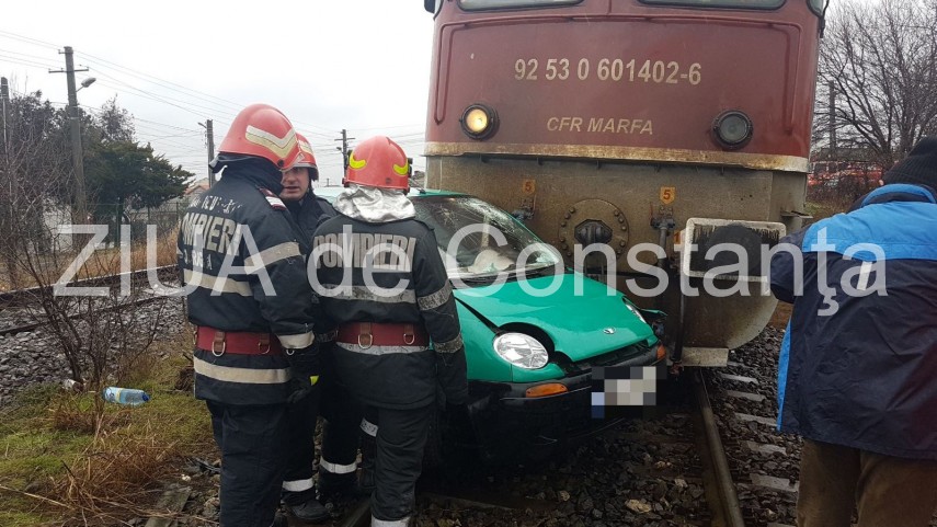 Imagini de la eveniment:Judeţul Constanţa. Accident feroviar în Ovidiu. Un autoturism a fost lovit de tren.