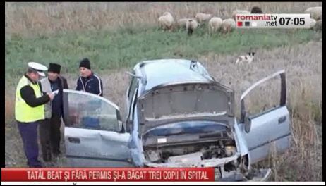 Accident grav. Patru victime. Trei sunt copiii şoferului fără permis. Şoferul-alcoolemie record