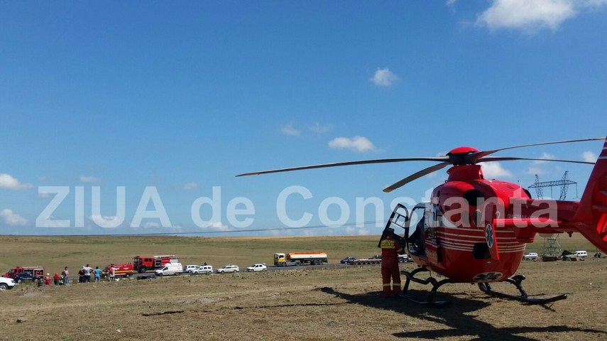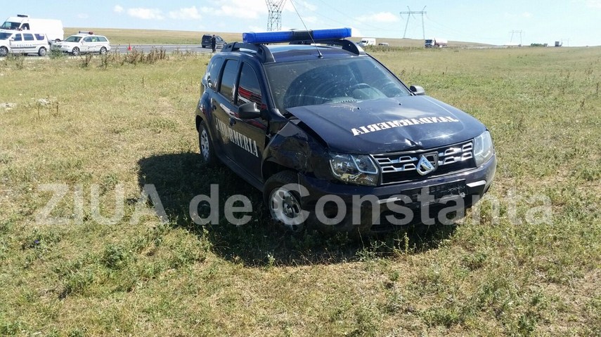 Din cele două victime, una a fost transportată cu ambulnţa SMURD şi una cu elicopterul SMURD. Din maşina de jandarmi, nu există nicio victimă. Potrivit servicului de Ambulanţă Judeţean Constanţa, cele două victime sunt un bărbt şi o femeie. Ambele victime s-au ales cu trumatism cranian, toracic, dar şi la mâini şi picioare. Jandarmii nu sunt răniţi.
