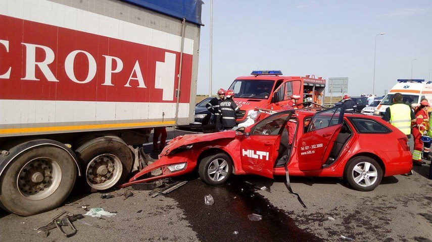 UPDATE 5- Accident între un TIR și un autoturism, pe autostrada A4, aproape de Agigea. Trei victime sunt încarcerate