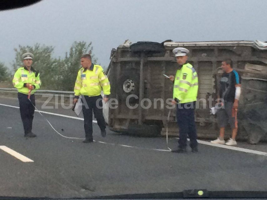 Accident pe Autostrada Soarelui! Un microbuz s-a răsturnat (galerie foto)