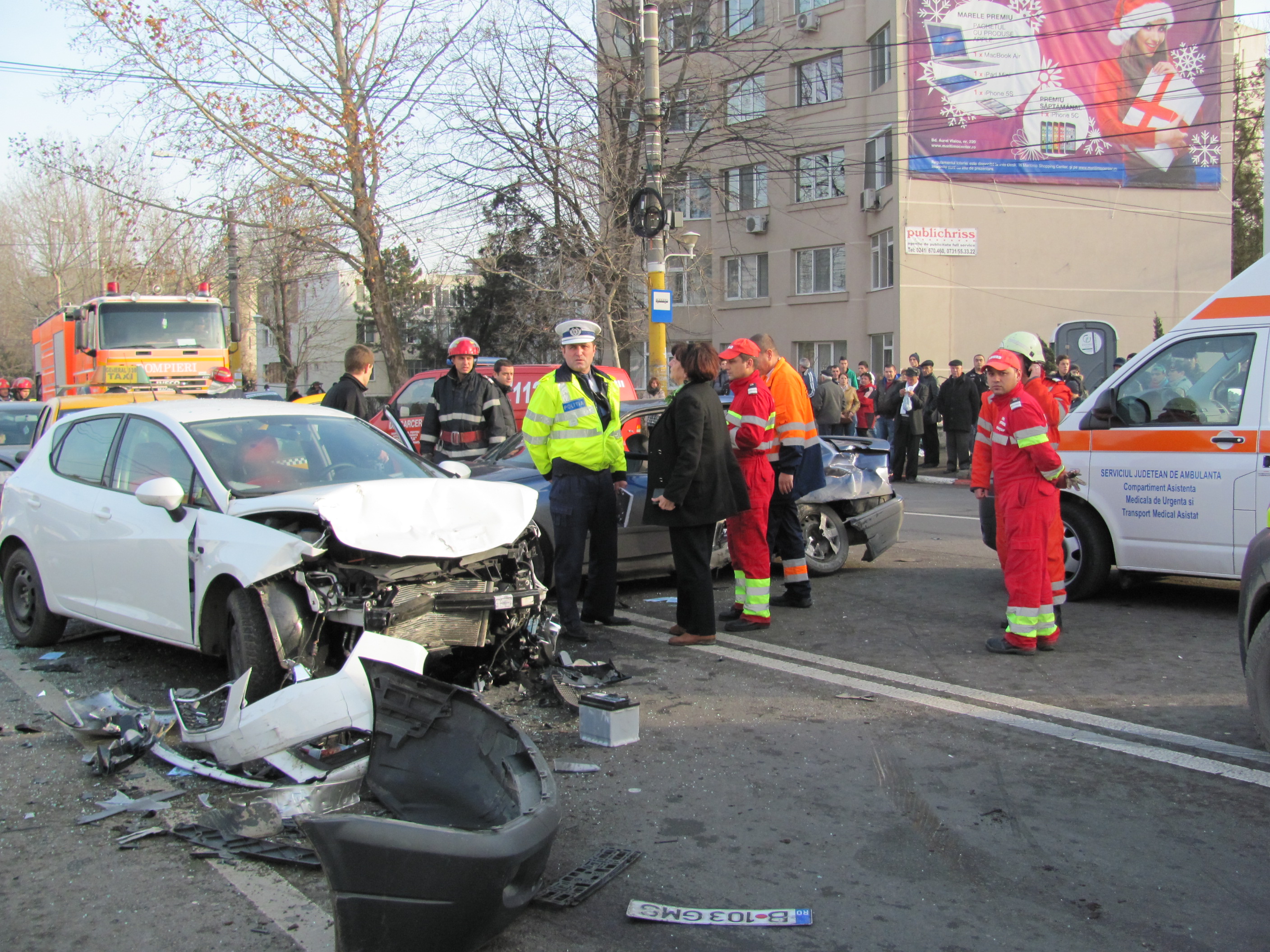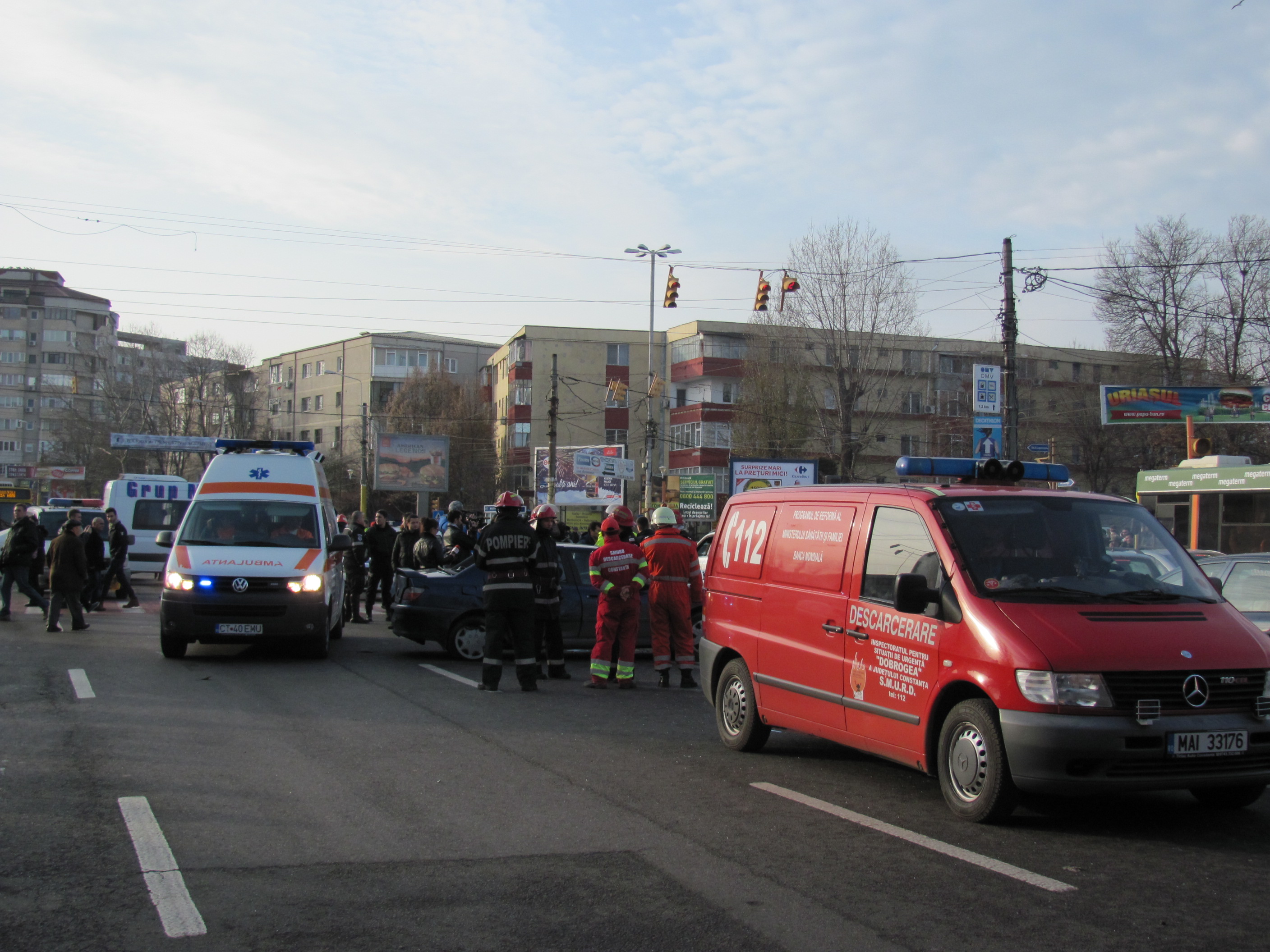 UPDATE: Accident rutier cu descarcerare la intersecția de la City Mall. Vezi imagini de la fața locului