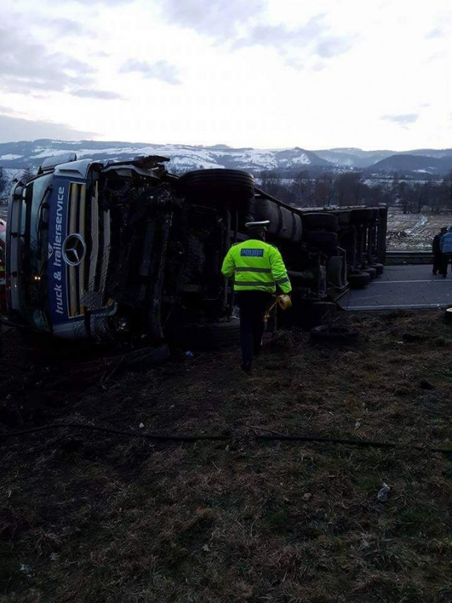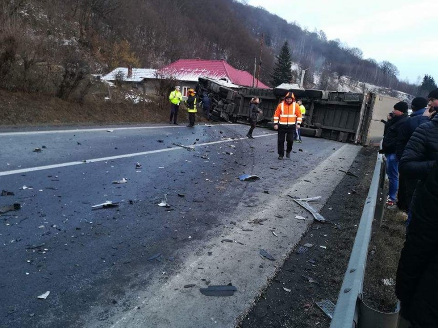 Accident rutier grav în județul Cluj. Un autoturism și un TIR, implicate. Doi morți și mai mulți răniți (galerie foro)