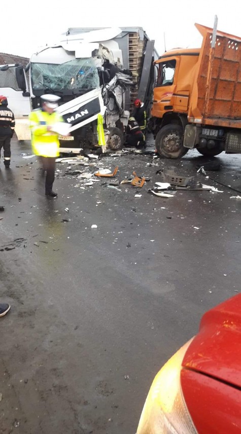 Accident rutier grav la ieșire din Brașov. Două autotrenuri implicate. Circulația este blocată pe ambele sensuri