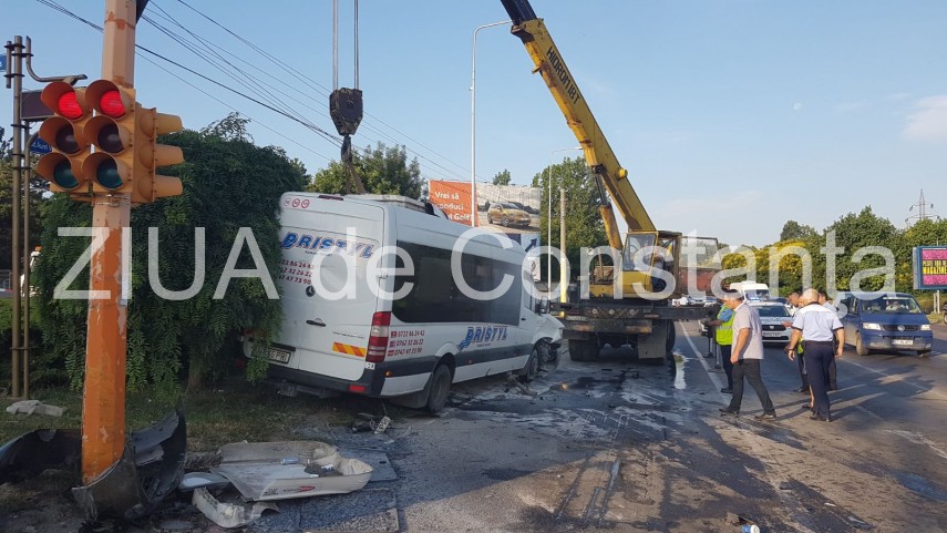 În urma violentei tamponari microbuzul s-a răsturnat în interescție.