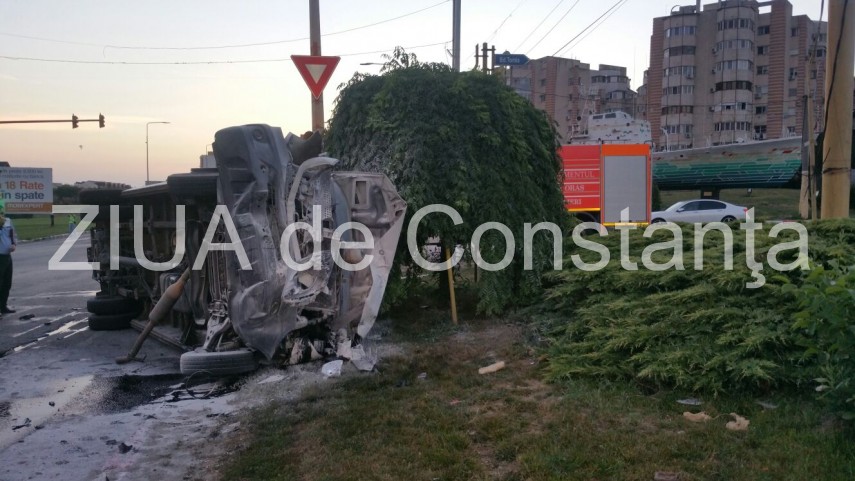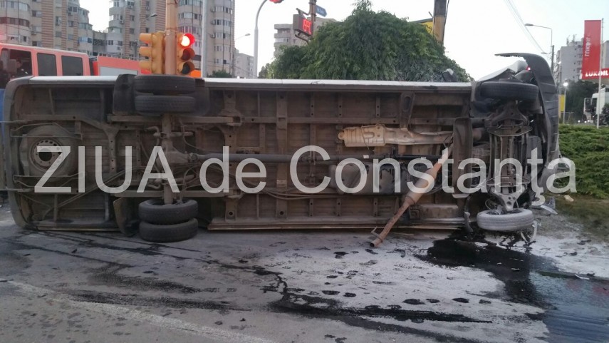 UPDATE3 Accident rutier grav la intrare în Constanța. Microbuz cu 13 persoane răsturnat în intersecție. Toate sunt la spital. A fost declanșat Planul Roșu (galerie foto+video)