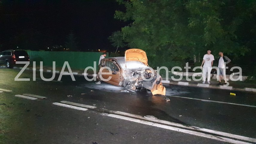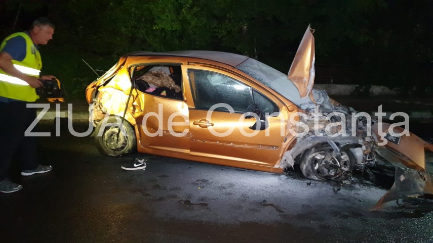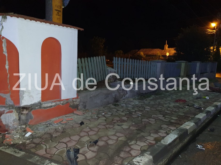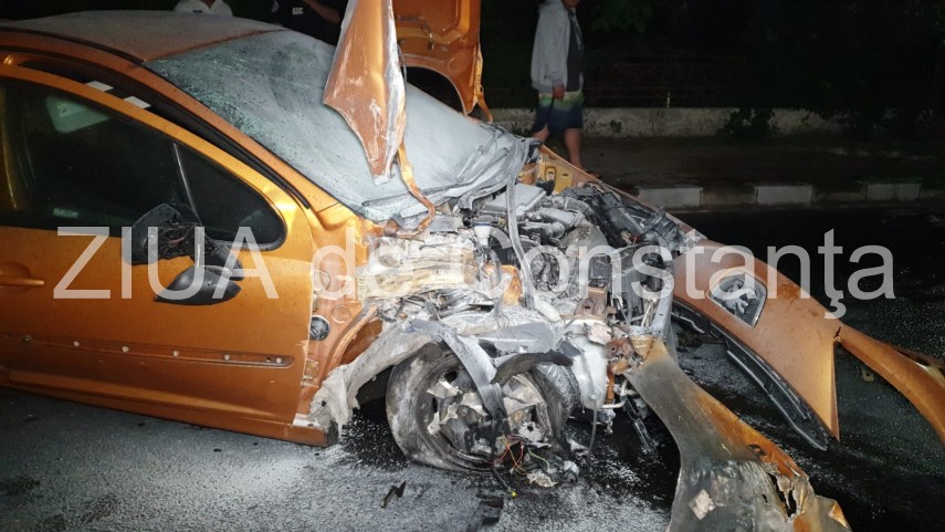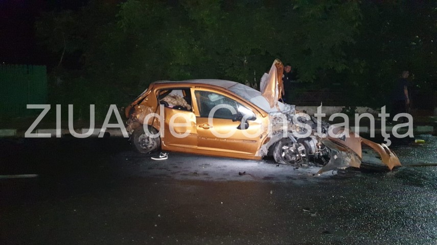 Accident rutier grav la intrare în Tuzla. Două victime. Maşina implicată s-a zdrobit de gard (galerie foto+video)