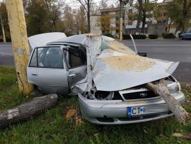 La locul accidentului a fost găsită o victimă, cetățean străin, care pierduse controlul direcției mașinii și s-a lovit cu autoturismul de un stâlp aflat marginea bulevardului, după ce a trecut razant printre o clădire și o ghenă din beton, iar în calea sa a rupt și un brad.