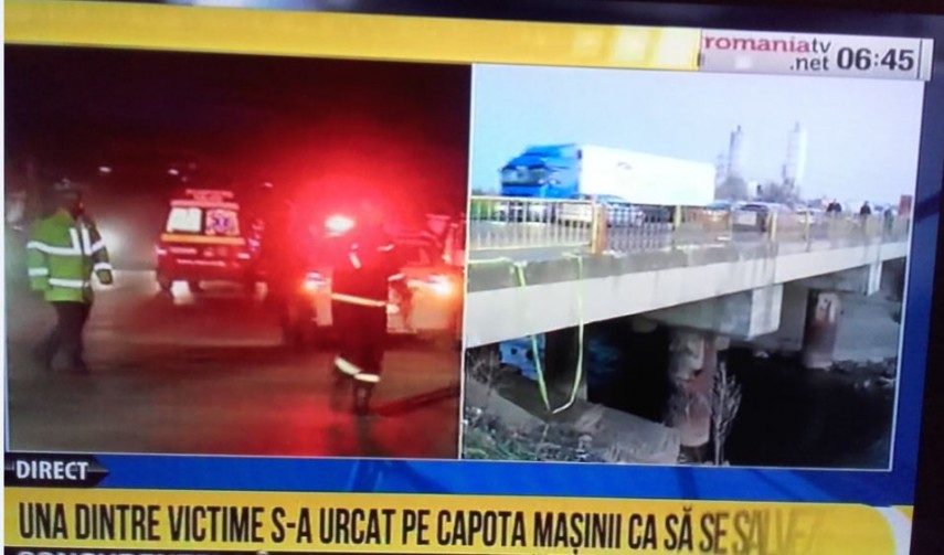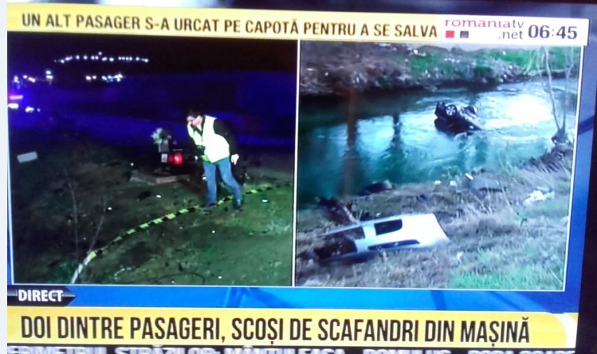 Accident rutier grav. Șase victime. Două persoane încarcerate scoase de scafandri. Un bărbat s-a urcat pe capota mașinii pentru se salva de înec