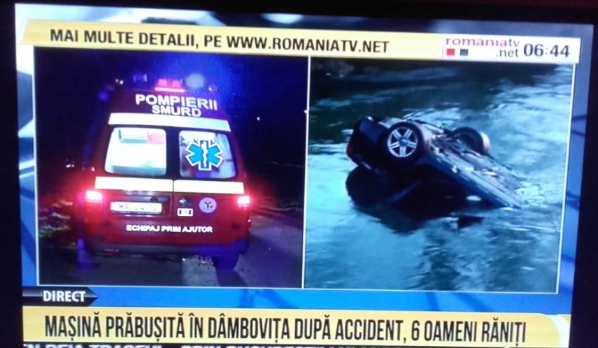 Unul dintre cele două autoturisme a ajuns în apa rece a râului pentru scoaterea celor șase bărbați fiind necesară intervenția scafandrilor.