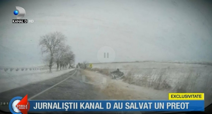 Jurnaliștii au sărit în ajutorul preotulul pe care au reușit să în scoată din mașină pe ușa din spate.