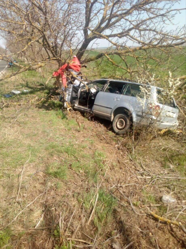Accident rutier în comuna Ostrov, județul Constanța. Un șofer de 67 de ani a intrat cu mașina într-un copac (galerie foto)