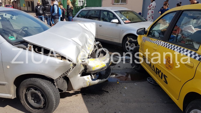 UPDATE. Imagini de la eveniment. Accident rutier în Constanța, la intersecția străzilor Avram Iancu cu Griviței. Trei mașini, printre care un taxi, implicate (galerie foto-video)