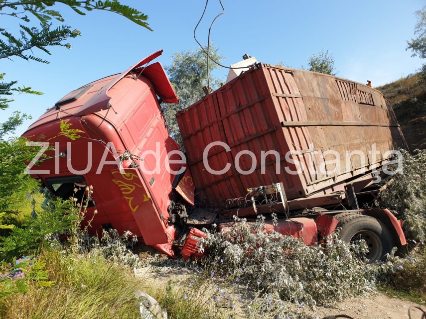 Accident rutier în Poarta Albă, judeţul Constanţa. Un TIR a ieşit de pe carosabil (galerie foto+video)