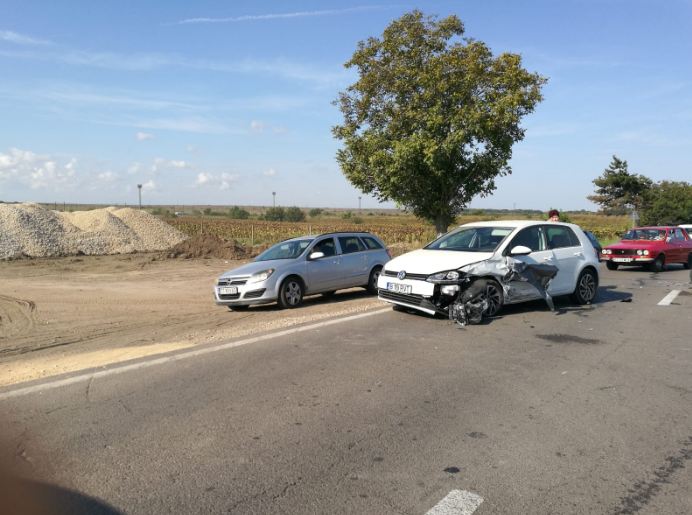 Astăzi, în jurul orei 09:00, un bărbat, de 62 de ani, a condus un autoturism, pe DN 3, în afara municipiului Constanţa, în banda nr. 2, dinspre Constanţa către Valu lui Traian şi, ajungând în dreptul unei societăți de dezmembrări auto, a redus viteza cu intenţia de a efectua manevra de întoarcere peste marcajul longitudinal dublu continuu, moment în care a fost lovit din spate de un autoturism, condus de o femeie, de 57 ani, în aceeași direcţie de mers, pe aceeași bandă. În urma coliziunii, primul autoturism a fost proiectat către înante, pe sensul opus de mers, intrat în coliziune cu un autoturism, condus de o femeie, de 50 ani, din sens opus, pe banda nr. 2. O autoutilitară, condusă de un bărbat, de 31 de ani, în timp ce se afla sub influenţa băuturilor alcoolice, rezultat de 0,41 mg/l alcool pur în aerul expirat, pe DN 3, banda nr. 2, dinspre Valu lui Traian catre Constanţa în încercarea de a evita coliziunea cu autoturismele implicate în accident, a virat dreapta, iesind în afara părţii carosabile. A rezultat vatamarea corporală ușoară a conducătoarei auto, de 57 de ani.