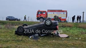 Potrivit primelor informaţii, la ieşire din localitatea Sibioara, judeţul Constanţa, un autotuturism s-a răsturnat.