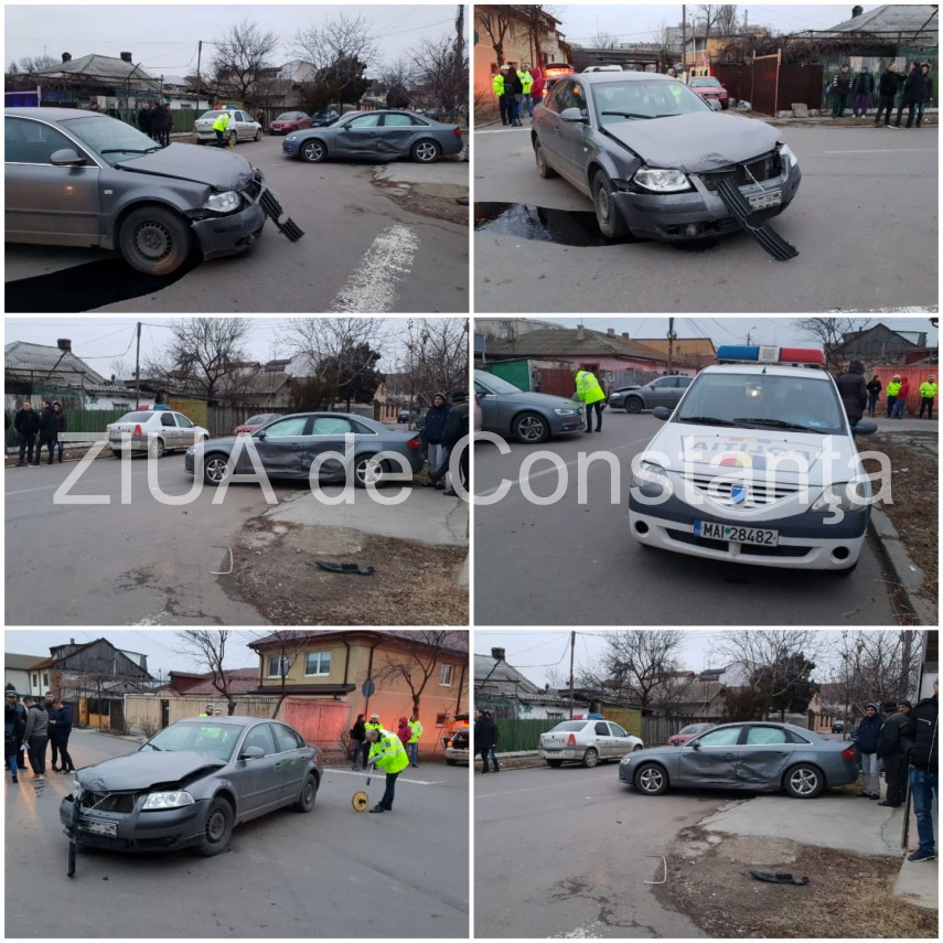 Constanța. Accident rutier la intersecția străzilor Ana Ipătescu cu Petru Cercel. Trei mașini avariate (galerie foto+video)
