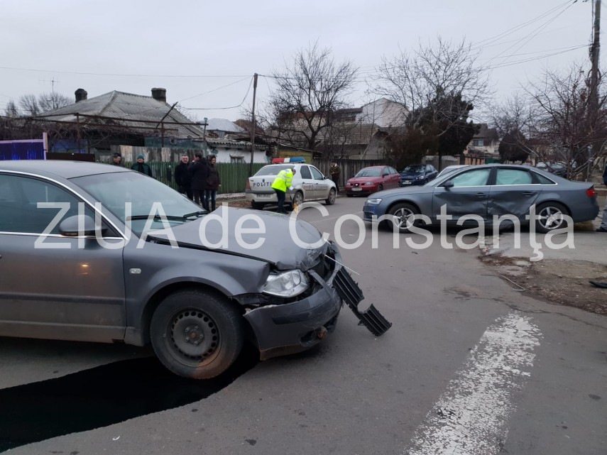 Constanța. Accident rutier la intersecția străzilor Ana Ipătescu cu Petru Cercel. Trei mașini avariate (galerie foto+video)