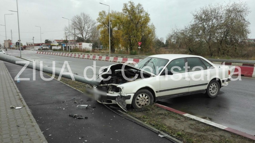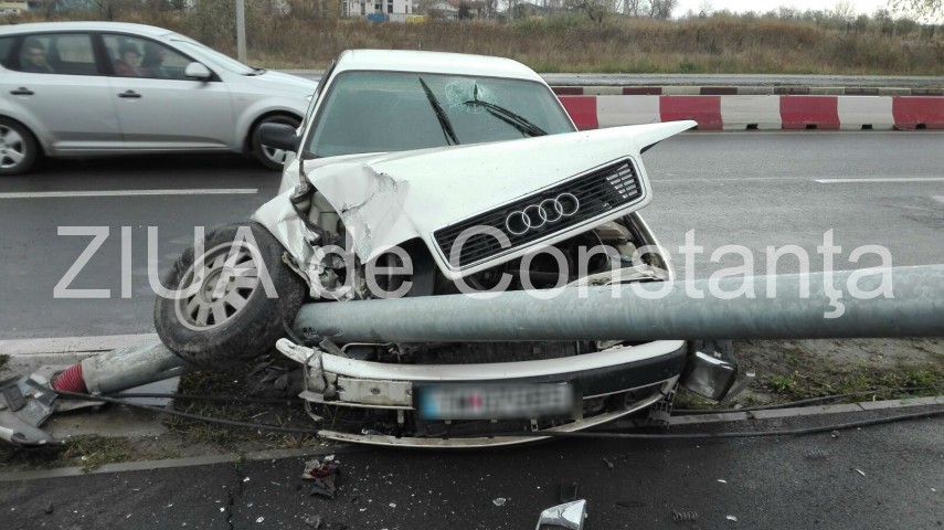 Imagini de la eveniment:Accident rutier pe podul de la Năvodari. Un stâlp a fost dărâmat (galerie foto+video)
