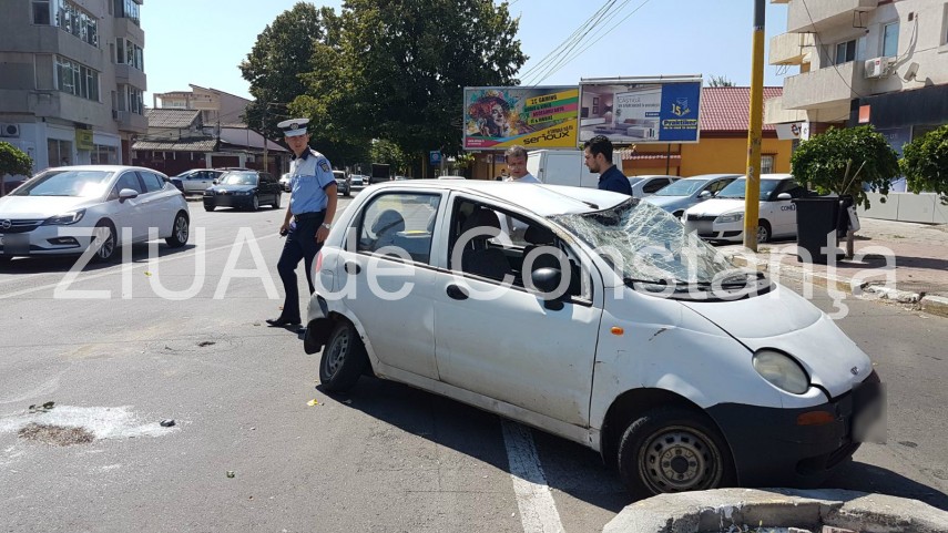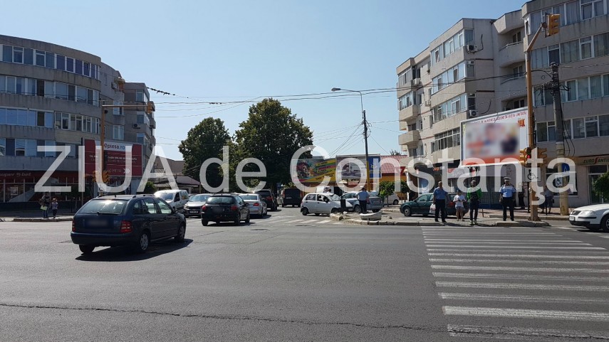 Accident rutier pe bulevardul Tomis. O maşină răsturnată (galerie foto+video)