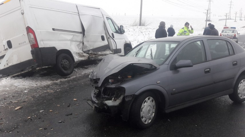 Accident rutier pe DN2A în apropiere de Hârșova. O autoutilitară a derapat. O persoană a fost rănită (galerie foto)