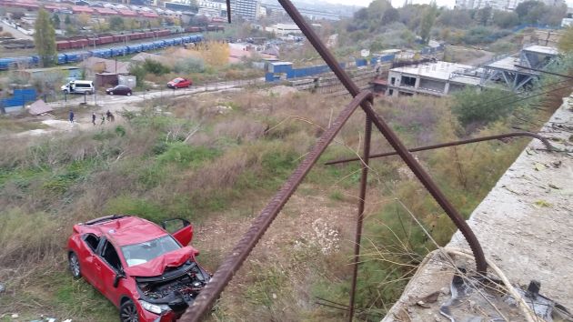 Potrivit reprezentanţilor Poliţiei Rutiere Constanţa, o femeie care se afla la volanul autoturismului a ieşit din parcarea unui bloc, a acroşat un biciclist, a traversat strada Traian şi a căzut câţiva metri în gol. Conducătoarea auto, un alt pasager aflat în autoturism şi biciclistul au fost transportaţi la spital cu răni uşoare. Niciuna dintre victime nu consumase alcool.