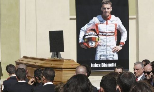 Sicriul cu trupul neînsufleţit al lui Bianchi a fost dus în catedrala Sainte Réparate de tineri piloţi, "fraţii săi de cursă", aşa cum i-a numit preotul Sylvain Brison.