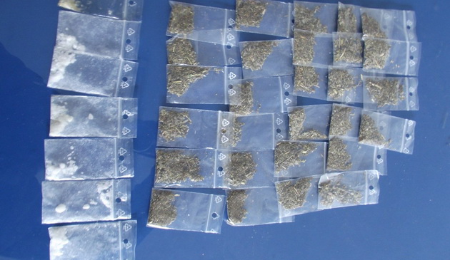 Asupra acestora, jandarmii au mai găsit 12 pacheţele cu muguri vegetali halucinogeni de culoare verde, un aparat de mărunţit şi două pliculeţe cu substanţă sub formă de pulbere albă.